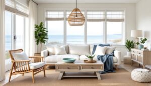 Modern coastal living room furniture walks a tightrope. Done right, it feels like a vacation home overlooking the water, natural,